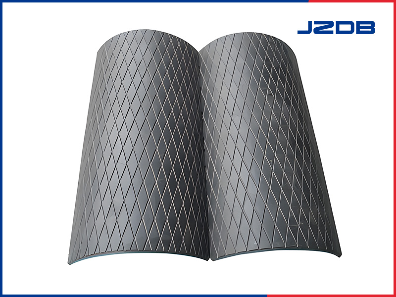 描   述: 由瓦殼式膠板通過(guò)螺栓與滾筒連接、瓦殼式膠板由耐磨膠層和金屬硫化而成,厚度為18mm和21mm。